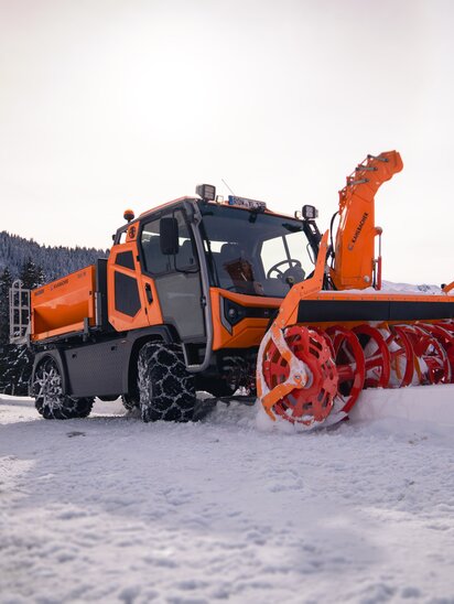- Axialkolben-Verstellpumpe: bis zu 170 l Förderleistung und max. 300 bar (bis 400 bar für schweren Schneefräseinsatz)