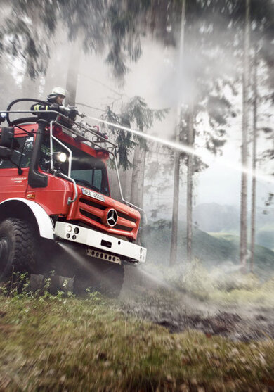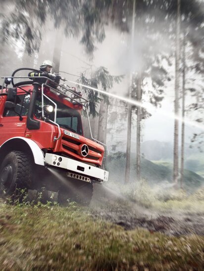 Mit seiner einzigartigen Geländegängigkeit schlägt der Unimog U 4023/5023 jeden Konkurrenten aus dem Feld. Weltweit. Dafür sorgen seine überzeugenden Leistungsmerkmale, wie z. B. der flexible Fahrzeugrahmen für hohe Stabilität auf der Straße und für enorme Verwindungsfähigkeit im Gelände, das überlegeneAllradkonzept mit Differenzialsperren in beiden Achsen sowie die Portalachsen für besonders hohe Bodenfreiheit. Ob Tiefschnee, Hochwasser, Morast oder Geröll – der Unimog bringt Mannschaft, Material sowie schweres Gerät schnell und sicher an jeden Einsatzort. Bei Hilfs- und Katastropheneinsätzen und beispielsweise als Expeditionsfahrzeug steht der Unimog an vorderster Front.